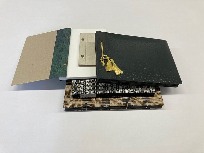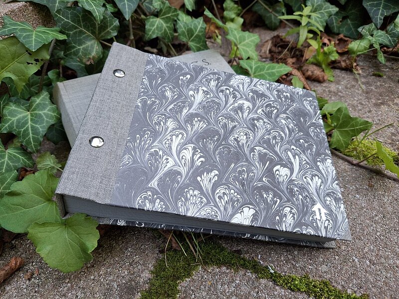 Gestaltungswünsche wie Titelprägung, unsichtbare Buchschrauben, individuelles Überzugspapier oder Überzugsleinen, Pergaminpapier zwischen den Seiten und Ähnliches versuchen wir, wenn möglich, zu berücksichtigen. Weitere Gestaltungsbeispiele werden vorgelegt.